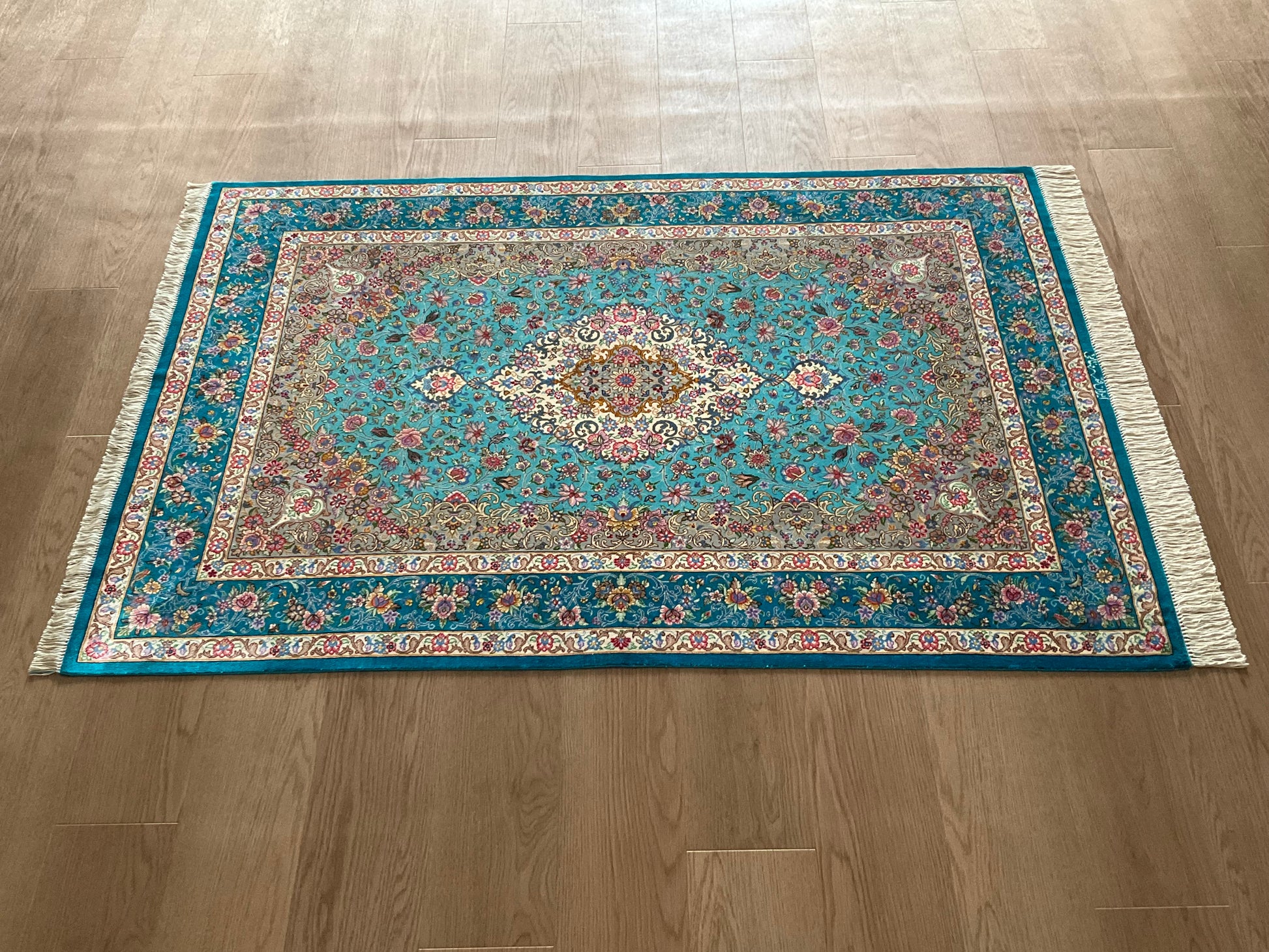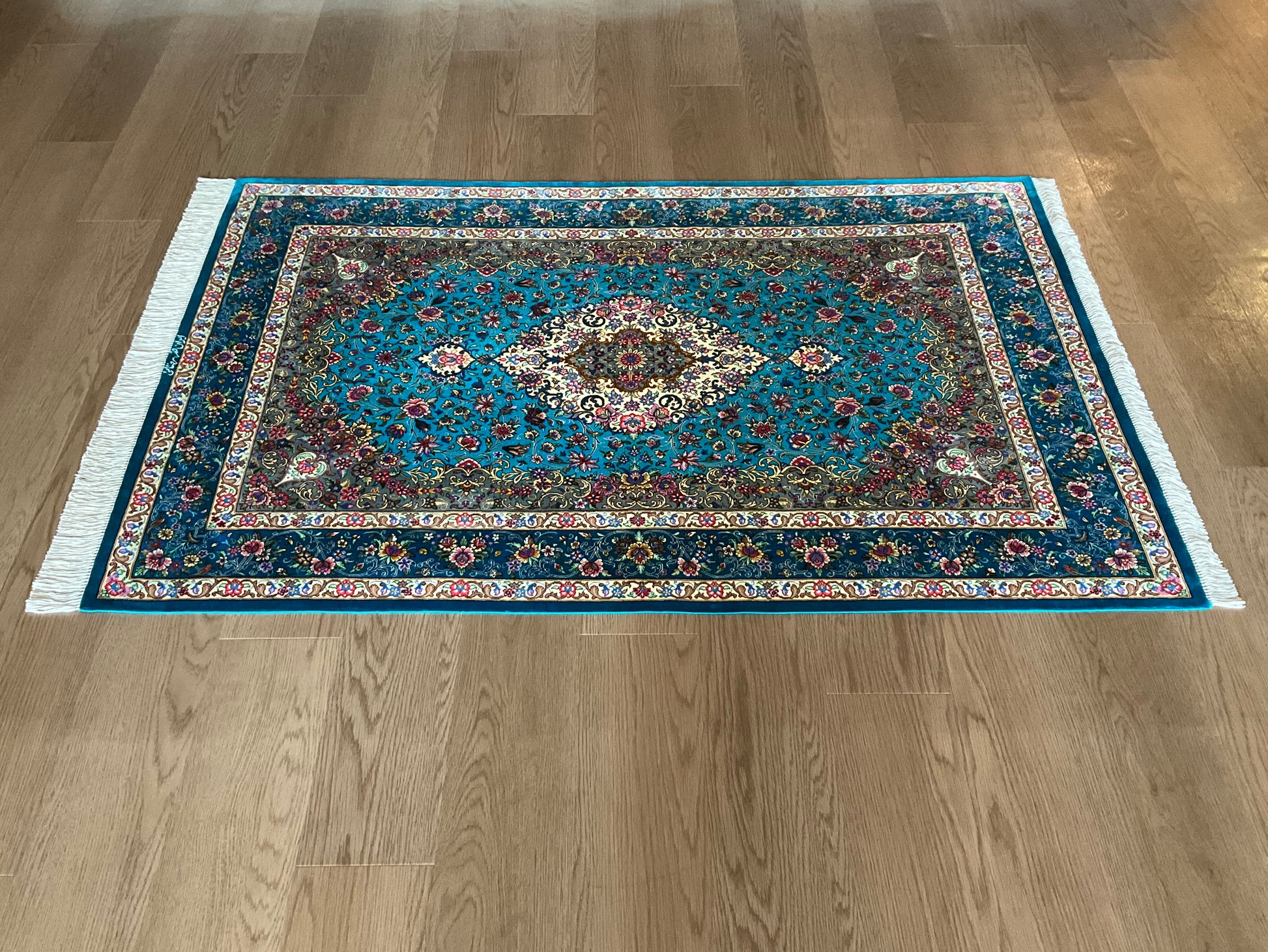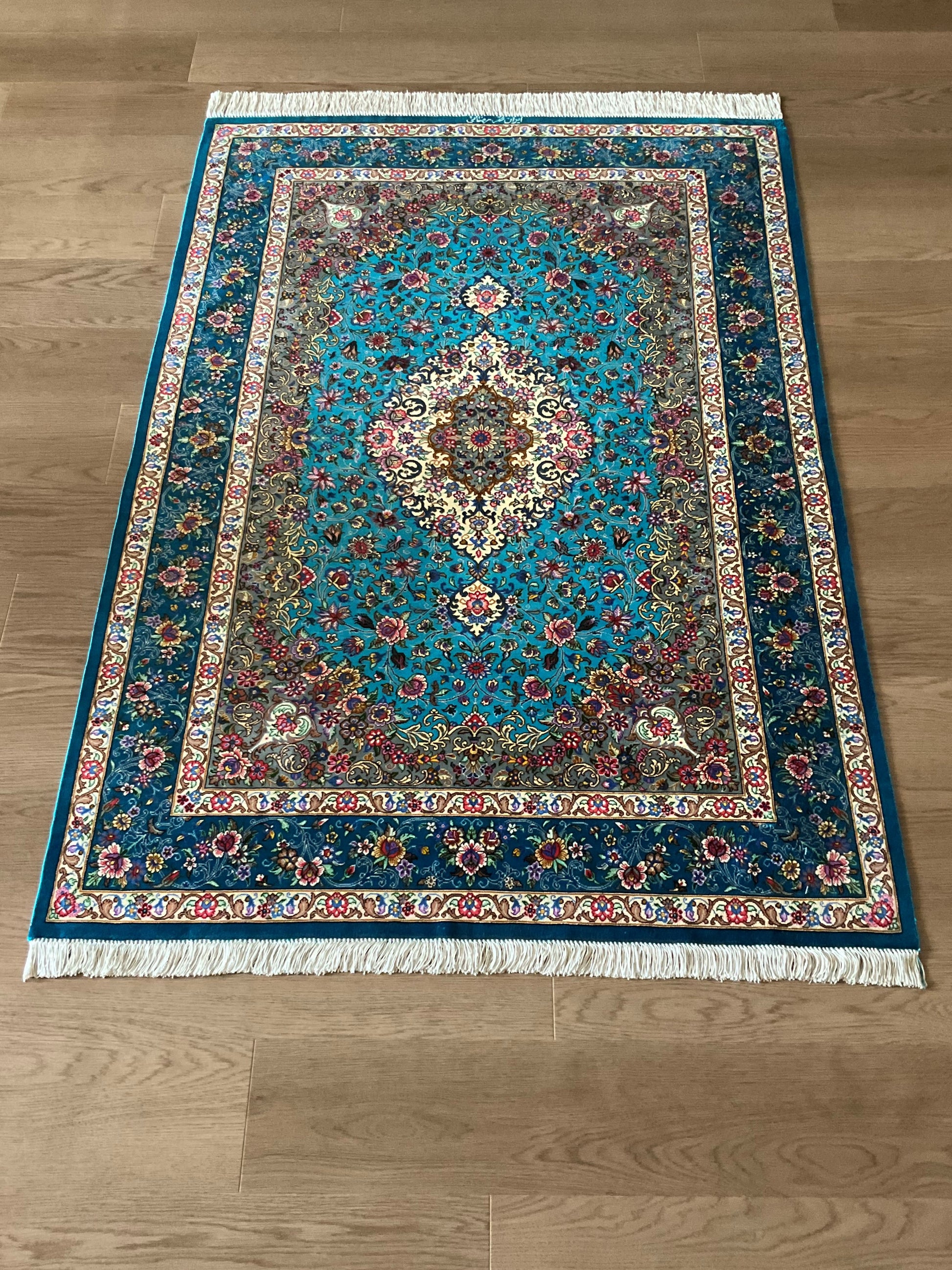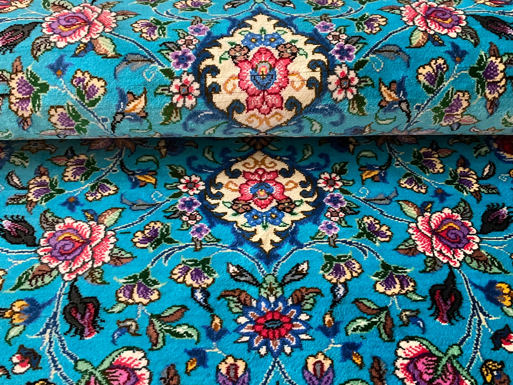 ペルシャ絨毯の五大産地のひとつであり、特に「シルク絨毯」の産地として世界的に知られています。クム産の絨毯のほとんどはシルク製で、伝統にとらわれない斬新なデザインや豊かな色彩、そしてシルクならではの滑らかで光沢のある風合いが特徴です。